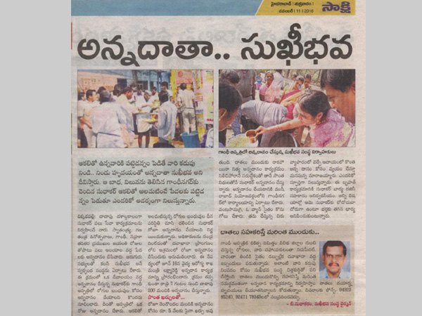 On any Birthday Occasion or Marriage Day or Anniversary Day in your family or when anybody starting new business and with an intention to run the business successfully, or anybody is suffering from any health problem and to recover their health very fast, with a good intention, or on any other occasion, if you donate Rs. 5,000/- to us, we prepare food and distribute in Gandhi Hospital to poor people or wherever you decide in twincities or nearby your house in your presence.
